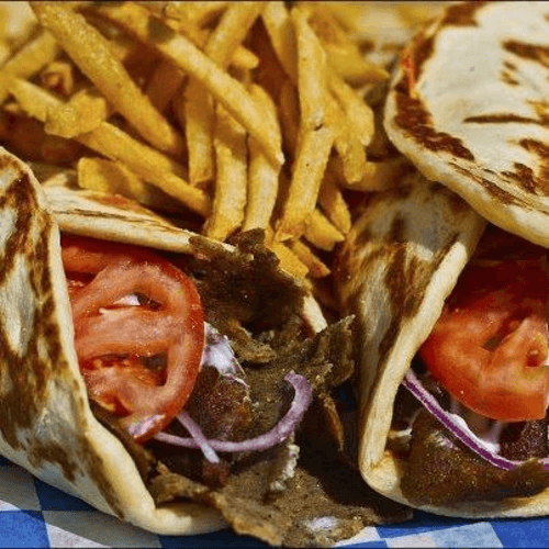 2 Regular Gyro Pitas and 2 Fries, 2 Regular Gyro Supreme Pitas and 2 Fries